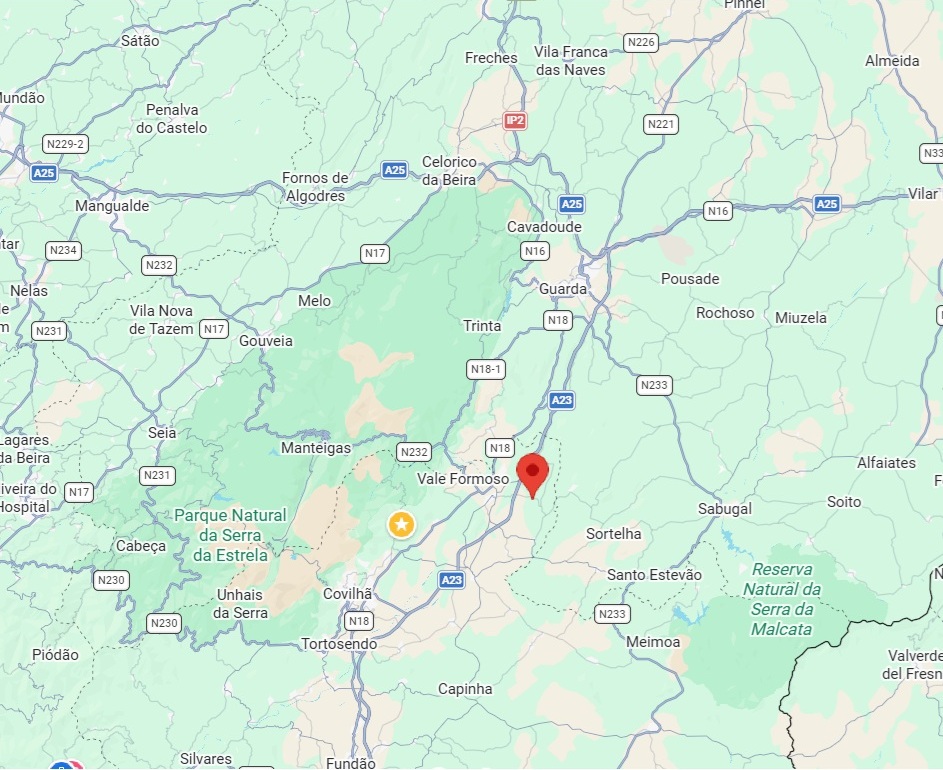 Casa-de-Jegs is situated on the hills, 5 kilometres from Belmonte (a beautiful medieval town) and 30 minutes from the larger towns of Covilha and Guarda.